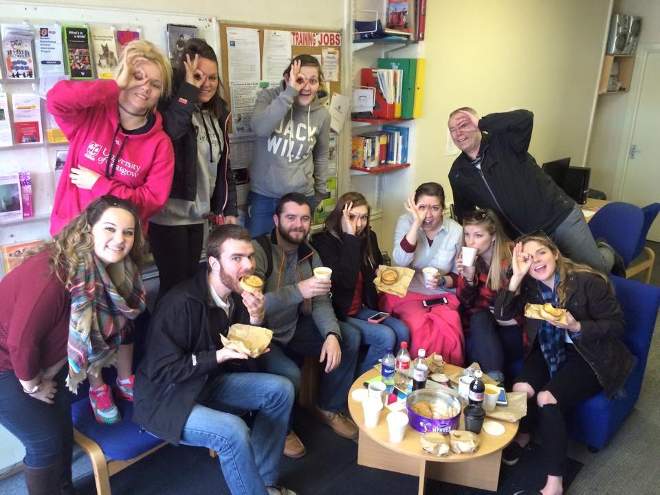 Students and staff having lunch in Parkhead youth Project